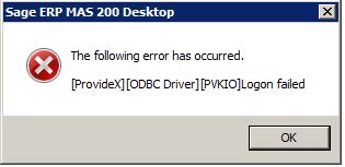 [Providex][ODBC Driver][PVKIO] Logon Failed.