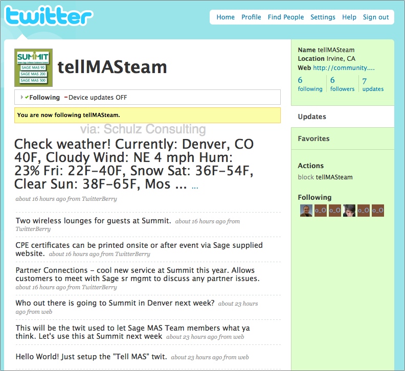 Schulz Consulting owner Wayne Schulz is on Twitter at http://www.twitter.com/mas90guru